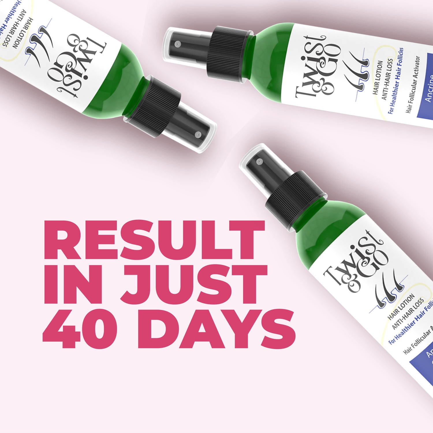 يمكنك ملاحظة انخفاض ملحوظ في تساقط الشعر في غضون 30 يومًا وتحسن عام في الشعر في 40 يومًا مع الاستخدام المستمر.