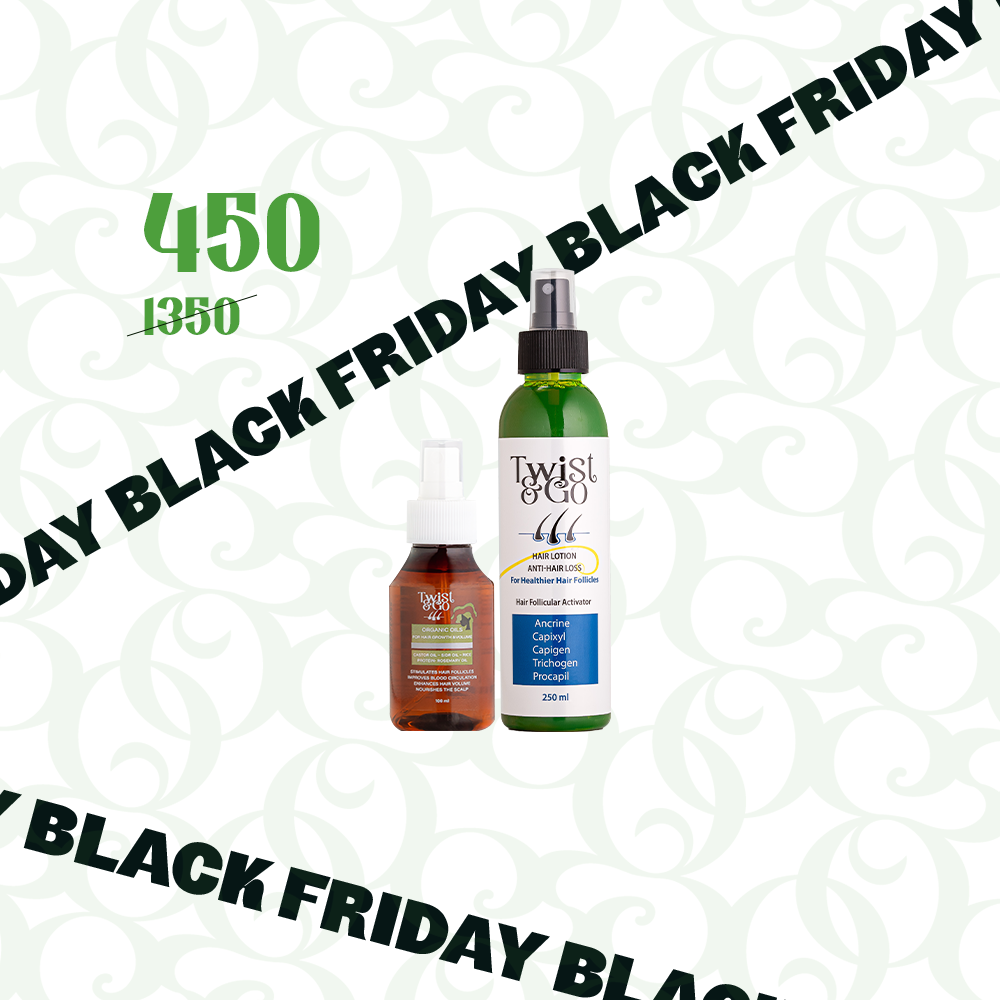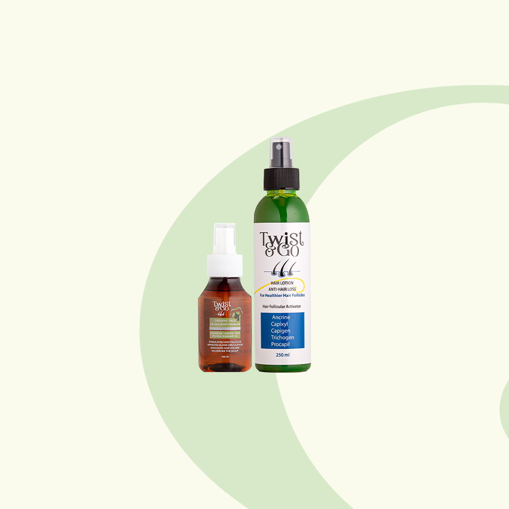 Your ultimate hair care duo for stronger, longer, and fuller hair! This bundle combines the power of our Anti-Hair Loss Lotion and Organic Oils Stimulator to reduce hair fall, boost hair growth, and nourish your scalp — naturally.